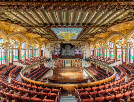 バルセロナ旧市街に佇むカタルーニャ音楽堂は、光と装飾が織りなすモダニズム建築の傑作。ステンドグラスに包まれる空間で、建物そのものが音楽のように響きだす特別な体験が味わえます。