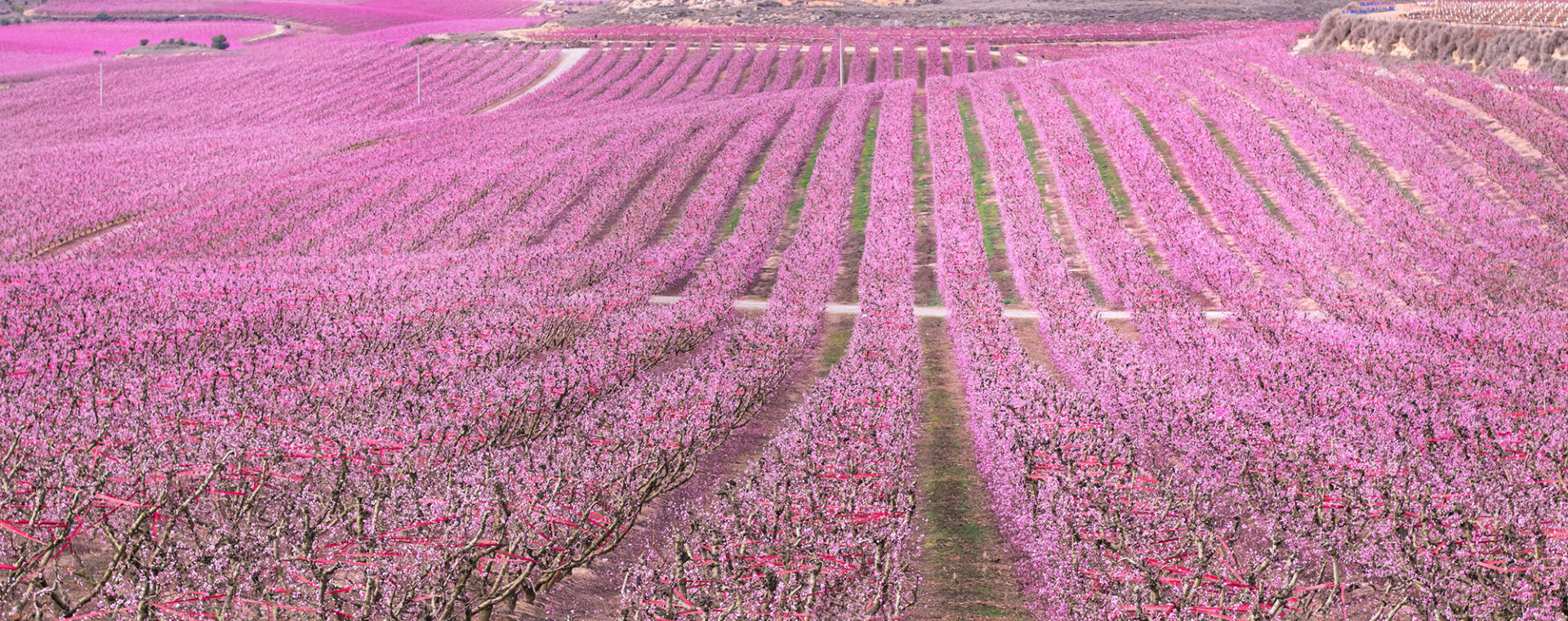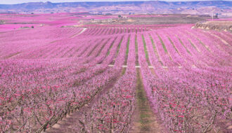 リエイダ県セグリア郡に位置するアイトナ(Aitona)は、春になると一面が淡いピンク色に染まる桃の花畑で知られる農村です。例年2月下旬から3月中旬にかけて、約800ヘクタールに及ぶ果樹園の桃の花が一斉に咲き誇り、カタルーニャ内陸部における春の風物詩として多くの人々を引き寄せています。