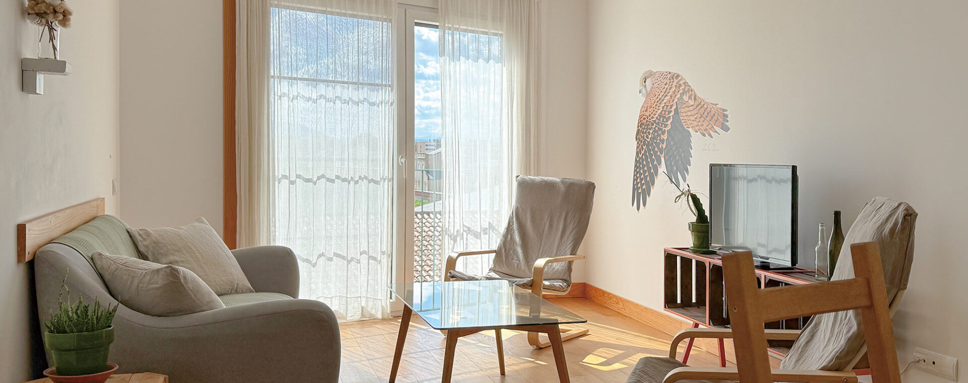 客室はいずれも広めに設計され、キッチンやテラスが備わっており、まるで自宅のようにくつろげる空間で、長期滞在にも適しています。館内には地元産の木材や高断熱素材が使用されており、快適性と環境負荷の軽減を両立。サステナブルな宿泊施設として、カタルーニャ地方のエコツーリズムを象徴する存在になっています。