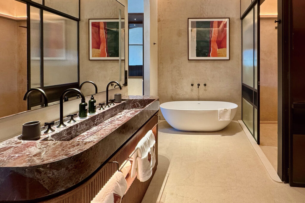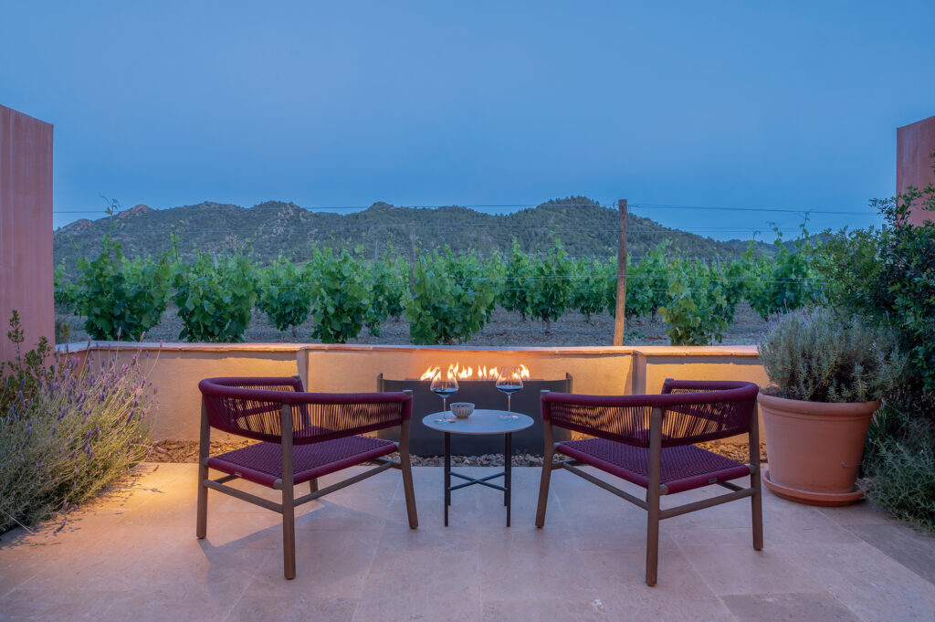 全24室の客室はすべてスイート仕様で、それぞれ異なるデザインが施されています。多くの部屋にはプライベートテラスがあり、段丘状に広がるワイン畑を一望できます。テラスに設けられたファイアーピットの炎を眺めながらワインを味わう時間は、プリオラートらしい“静かな贅沢”です。