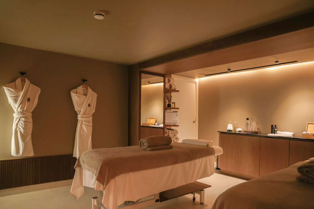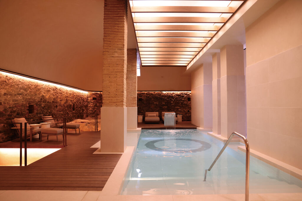 館内にはインフィニティプール、スパエリアが揃い、落ち着いた空間づくりが特徴です。規模が大きすぎない分、サービスの行き届いた心地よい滞在を楽しめます。農家建築の一部を活かして再構成されたスパエリアには温水プール、サウナ、トリートメントルームが整い、天然グレープシードオイルを使ったトリートメントが人気です。