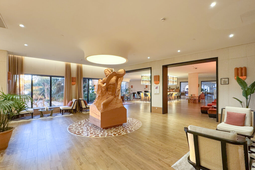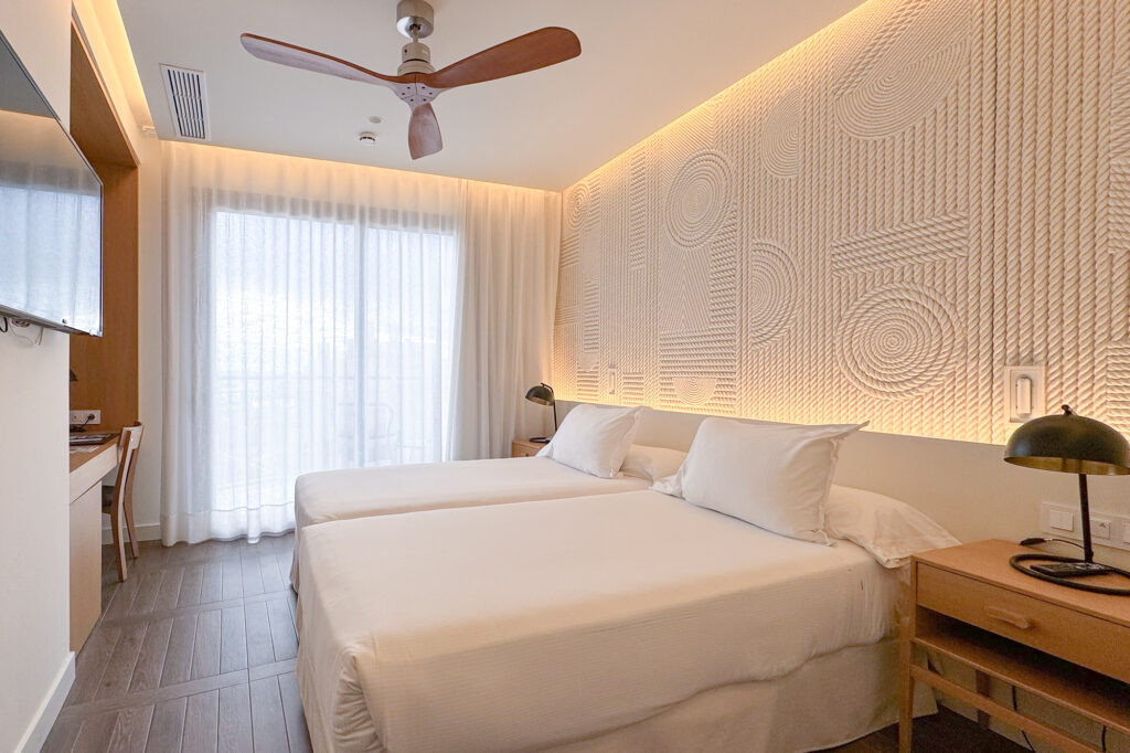 1960年代に建てられたこの建物は、2020年にH10ホテルズによって全面改装が行われており、ミッドセンチュリーのエッセンスを取り入れた洗練されたホテルとして生まれ変わりました。館内は白とウッドを基調とした明るい空間で、ロビーには地中海の光が差し込み、どこにいても開放的な雰囲気を感じられます。