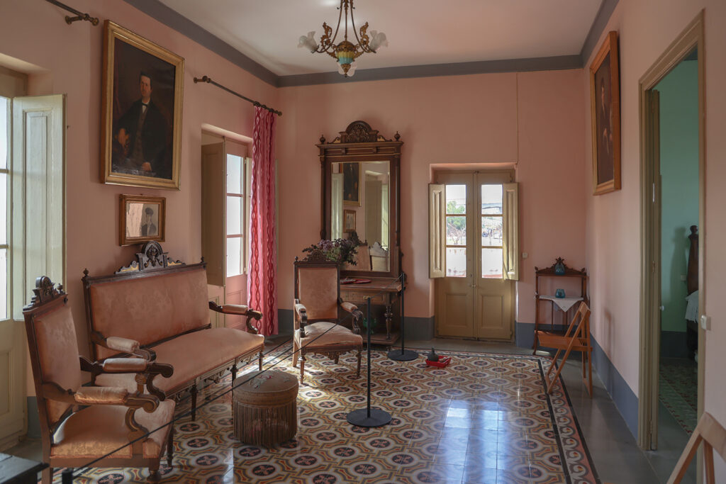 敷地内には食堂や寝室を備えた母屋のほか、かつて家畜を飼っていた馬小屋やブドウ・オリーブの貯蔵庫も残されており、農家としての生活の記憶が色濃く刻まれています。陶器の水差しや旧式の冷蔵庫といった日用品からは、時代を超えて受け継がれてきた暮らしの知恵や工夫を垣間見ることができ、訪れる人の想像力を刺激します。
