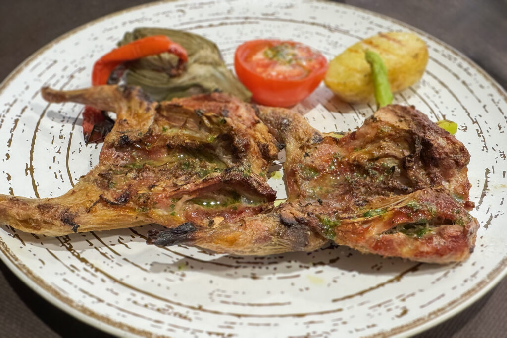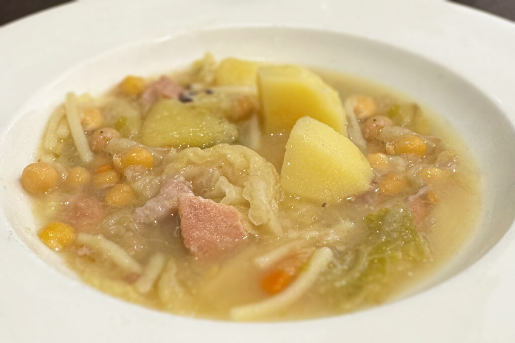 店内はアットホームな雰囲気で、過度に観光客向けに振った印象はありません。提供される料理も、周辺で手に入る食材を使った素朴な内容が中心で、肉や野菜、パスタを煮込んだ郷土スープや、肉やきのこを詰めたカネロニ、ブティファラにじゃがいもを添えた定番料理など、カタルーニャ北部やピレネー山麓で受け継がれてきた日常の食卓を感じさせる構成です。日本人の感覚では特別に映るジビエや野生きのこも、特別扱いされることなく、土地の暮らしの延長として自然に提供されます。